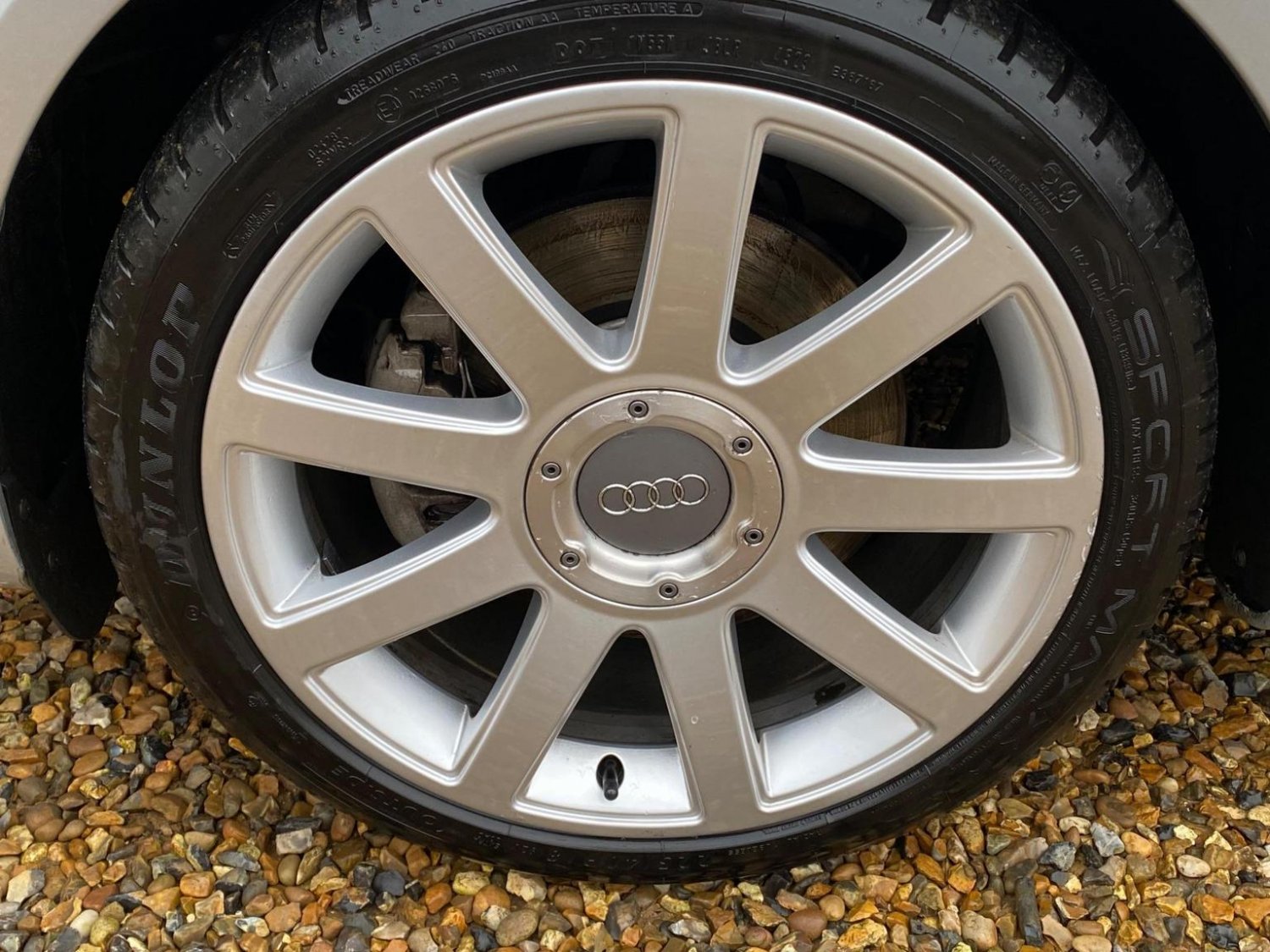 West Suffolk Cars are pleased to present this Audi TT 1.8T (225BHP) Quattro Convertible, finished in Lightning Silver with a matching Leather/Alcantara Interior. This Audi has been owned by the last owner for the past 19 years, and it has been maintained regardless of cost, there is a extensive service history file and service book, with a total of 14 service stamps in the book, with the car's initial servicing being carried out by Audi main dealers up to 56,000 miles, then was looked after by a Audi Specialist garage in Cambridge, with the last service being done at 86,000 miles, in addition to this the cam belt and water pump were changed at 71,000 miles. The car is not only in outstanding condition, it also has the right spec put on it from new, with the car having the optional 18" Alloys, Bose Sound System, Xenon Headlights with Headlight Wash, Half Leather/Alcantara Interior. The car is completely standard except for the radio, which is now a unit that has Bluetooth, but we do have the original radio if you want to put it back to standard. The Audi comes supplied to you with 2 keys, a Convertible Tonneau Cover and has a MOT through till November 2025 +++ VIEWINGS BY APPOINTMENT PLEASE +++